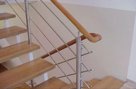 Indendørs gelænder, rækværk i rustfrit stål. - Håndliste i ASK.